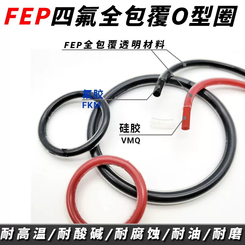 外覆FEP/ PFA O型圈具有良好的抗溶涨性和化学稳定性(除非在高温下受到碱金属、氟和一些卤化物的侵蚀)在靠近橡胶 O型圈附近有很好的弹性, FEP/ PFA的摩擦系数非常小(仅为0.1~0.2),而且具有优良的抗气体渗透性,这些性能使得包氟O型圈能够真正应用于恶劣的环境中。